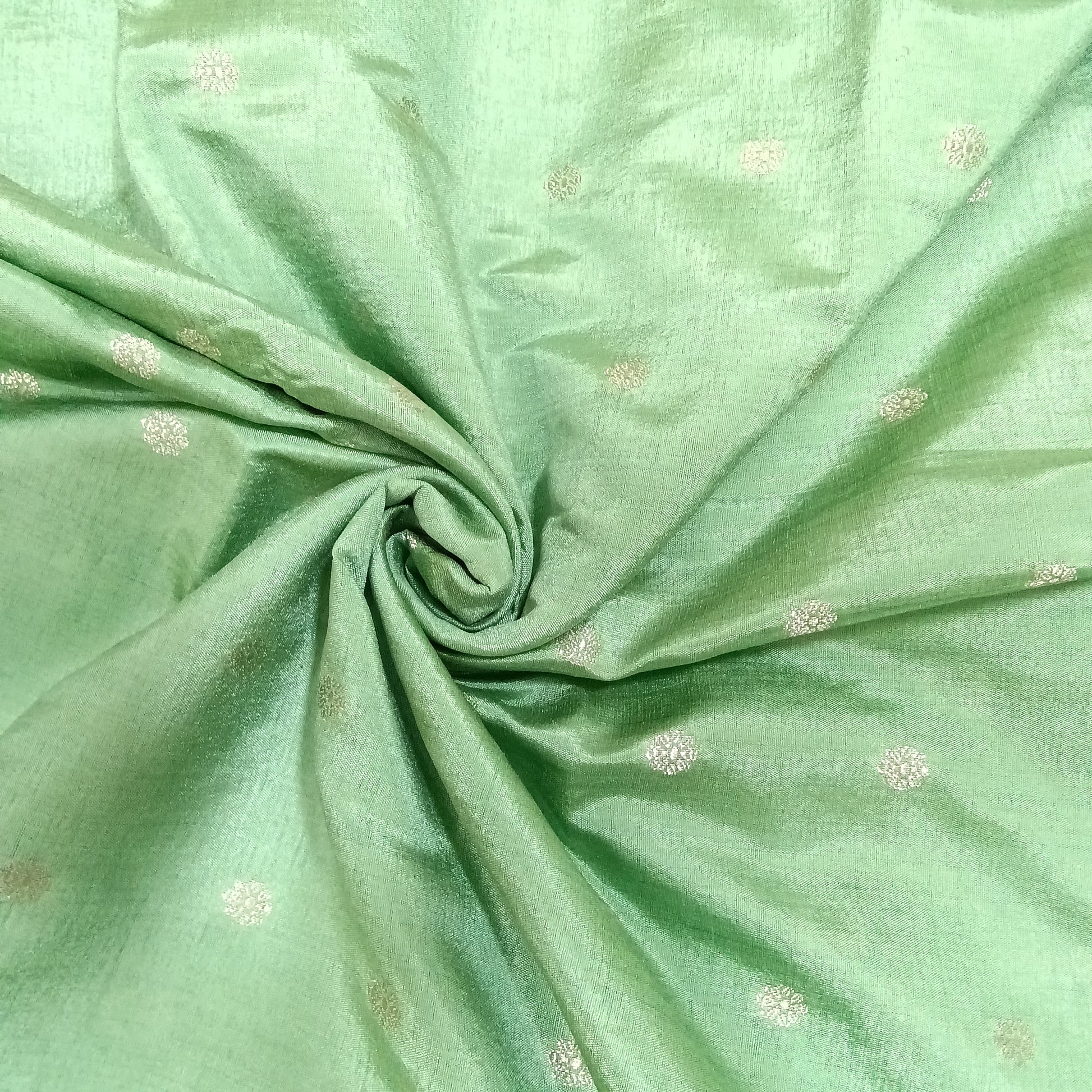 Design Detailing: This exquisite pista green saree often features Kantha embroidery or is a type of Banarasi/Kanchipuram silk with delicate "butta" (motif) weaving. "Katha" refers to a traditional style of hand-stitching prominent in the Bengal region, known for its artistic and often narrative patterns.