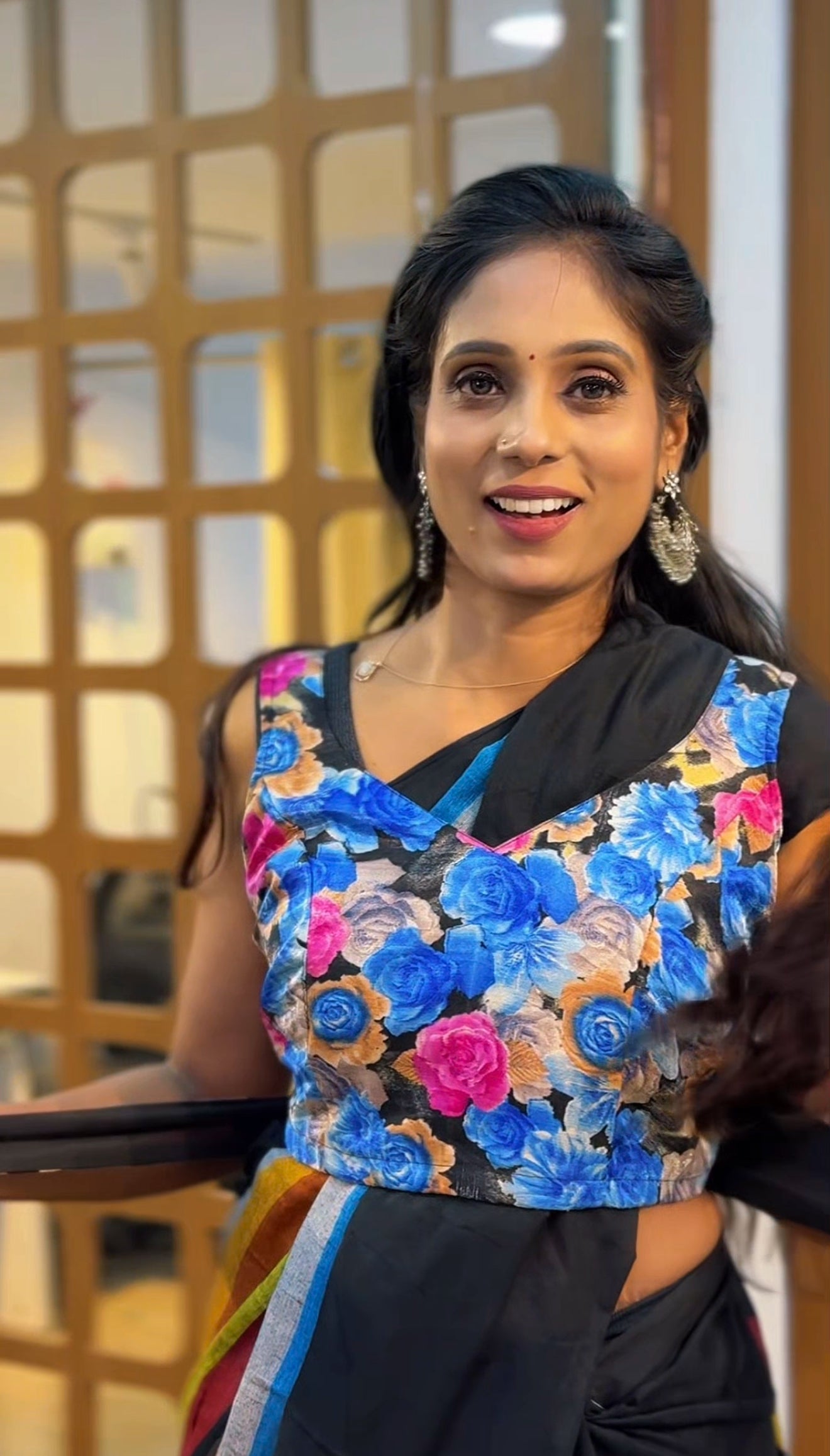 The colorful pattern features blue, pink, and orange flowers on a dark background.