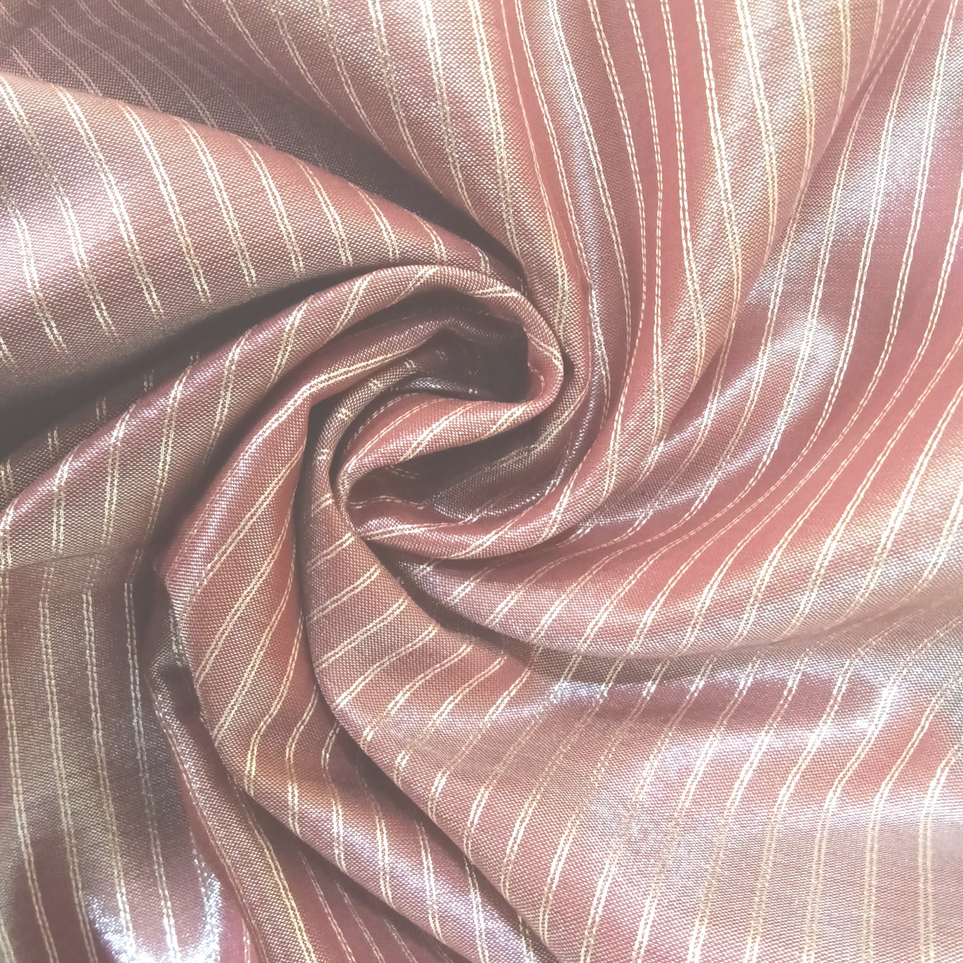 It is likely made from a crisp Dupion or Kota Doria silk fabric.
